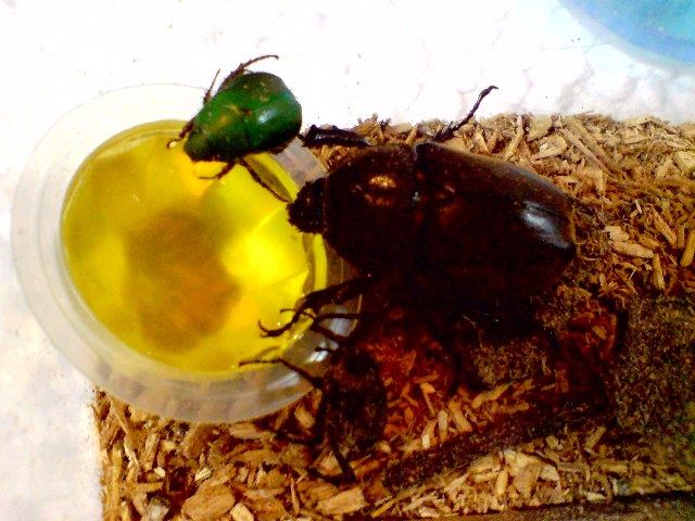09/28/23:21 まだまだ元気 仲良し3匹?!組みこの夏、妹が長野から持って来てくれたカブトムシご夫妻の現在です。カブトムシご夫妻は、この 今も3人?!いや3匹は仲がよく、一緒にエサを食べるほどです。朝晩冷え込んできたんだけど、3人仲良く元気にやっています。 PR