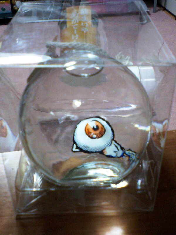 皆生温泉 へ車 を走らせました。車での移動中も、相方と「脚が痛い 」「太ももがぁ・・・ 」「腕だるいぃ~ 」とヒーヒー言いあっていました。宿について、兎にも角にも、「温泉入ろう!!!」ということで、いざ、温泉へ。 にゃん子たちが泊まった宿の温泉は、それほど広くはないのですが、十分堪能できました。お湯もにゃん子が好きな「熱め」。パンパンになっていた足やら太ももやらを揉み解しまくりました。 体を温めてすっかりいい気分 になったにゃん子に、今度は、す・す・睡魔がぁ・・・・。で、で、でも、食事 が待ってるから、眠気 と闘いながら時間まで待ちました。 )でも、ちょうど、食事をする人が多かったのか、食事の段取りがイマイチだったかも・・・・・(まぁ、しゃーないか) 食後には、アイスクリームまで頂きました。嬉しーなぁ~。 お部屋が2階のお部屋だったのですが、階段の登り降りが非常に厳しかったです。でも、寝る前にもう1回、温泉に入ろうということになり、また入って体を温めました。 2回も温泉に入っているから、布団にもぐり込んだ瞬間、寝ていました。 翌日、目が覚めると、やっぱり、体中が痛い ホンマに、痛い(T_T) そんな痛い体でよろよろと歩きながら、車を境港へと走らせたのでした。 あいにくの雨だったのですが、やはり連休と言うこともあり沢山の方が来ていました。 また、記念館のすぐ後ろには、「妖怪楽園」という小さなシアター付のお土産やさんも在りました。 そして、にゃん子は、お土産に、こんなのを買っちゃいました。 目玉おやじのキュート瓶です。あっ、もちろんお酒ですよぉ~ 思わず、形にそそられて、買っちゃいました。 瓶の中をのぞくと、目玉おやじが見えるんですよぉ~。 と言うわけで、筋肉痛にうなされながら、家路に着いたにゃん子でした。 でも、今回は、登頂できたので、非常に満足できました。 相方さん、ありがとうねぇ~