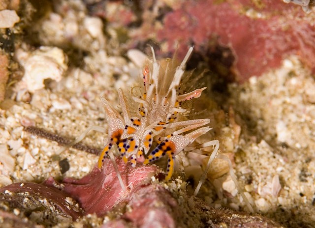 午後になって、少し風が出てきました。 といってもこれくらいなら、全然平気です。海の中も 特に影響はありませんでした。 この後浜No.2には、「トゲツノエビ」様がいらっしゃるというお話を聞き、一目お目にかかりたいと思い、真っ先に、連れて言っていただきました。 水深10mあたりの岩陰に身を潜めていました。 トゲツノエビ様 ホンソメワケベラにクリーニングしてもらっているのかもしれませんね。 ヤシャハゼ様もヒレナガ様もいらっしゃったんですが・・・・・。すぐに引っ込んじゃいました。 この後、ガイドさんが「移動するよ」と合図をしてくださったのですが、途中まで、グループについていけてたんです。 が、しかし、気がついたら、全然、知らないグループのところに、混じっていて・・・・・・。 やっちゃいました ロストです。今回、沢山のグループとダイバーで、ごった返していて、もう全然わかんないんです。 仕方がないので、船下のブイ元に戻ってまってようと移動したら、necomedacaのグループが居ました。 「あぁぁぁ、よかったぁ・・・・」 無事に戻れたのもブリーフィングの時にポイントマップを見ていたのと、柏島に何度も潜りに来てたからかも知れません。 でも、ほんまに、合流できてよかった(>_<) 2匹いたので、2匹一緒になんとか撮りたいとがんばったのですが・・・・・・・。むずかしーーー ![]() カワイすぎますぅ~ これにて、初日のダイビングは終了です。 どうやら、日曜は、大荒れになると聞きました。 朝、起きて海見て、マジで驚きました。 こんなんで、船だすの?っていうほど・・・・・・ つづきは、また明日 PR