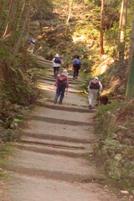 11/04/23:50 歩きに歩いた23423歩 嵐山で15分ほど待つと、清滝行きのバスが来て、それに乗車。いよいよ、トレーニングスタート。 今回、歩くコースは、このルート。(赤でラインを引いているところ) 距離的には、愛宕大神 し、しかし、行く道は、厳しく、いや、めっちゃ急勾配で、 行けどもいけども、階段&坂。 のぼりに弱いにゃん子は、足が上がりません。休憩ばっかりしてました。でも、慣れている人は、平坦な道を歩くかのように、スイスイ登ってい お弁当を食べて元気になったにゃん子は、また、もくもくとひたすら歩くのでした。 そして、神社手前でトイレに行ってやっと神社のところに来た。と喜んだのもつかの間。目の前には、また、