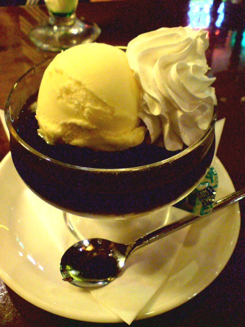 にゃん子がオーダーした、コーヒーゼリーは、たかがコーヒーゼリーごときで でも、ここのコーヒーゼリーは、バリウマ。 ここのゼリーは、コーヒーが濃厚で、豆を引いて、ちゃんとドリップした濃い目のコーヒーを使って作っています。だから、ゼリー自体に、しっかりとコーヒーの香りがするの。すごくない?ゼリーの上には、バニラアイスと生クリームがたっぷりのっていて、濃厚ゼリーと相性はバッチリ。 またまた幸せを感じるにゃん子なのでした。