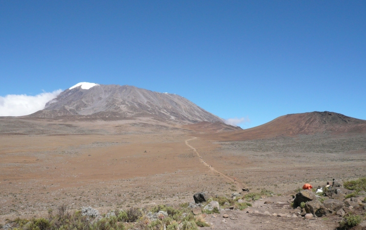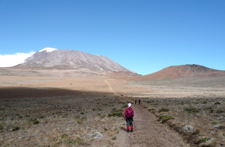 がいいし、キリマンジャロのSUMMIT もはっきりくっきり見えてるよ。また、眼下には、雲海が広がっています。これくもだよぉ~。 今日の行程は4700mのKIBOHUTまで行くこと。 去年は6~7時間くらいかかったけど、今日は、なんとしてもお昼過ぎには到着したい。