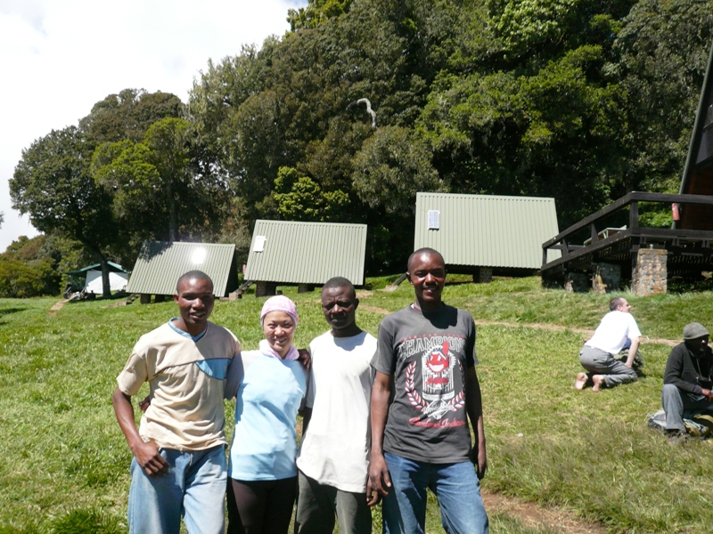 7:00過ぎ、TAROが先に出発した。 「じゃぁ、日本で会おうね」 何か、変な感じ。 そして、にゃん子もいよいよ出発。 3700mのホロンボハットに別れを告げて、いざ、マラングゲートへ。 当然、山を下っていくと、登ってくる人とすれ違う。 ”HELLO!!" "Jambo" と挨拶を交わし、すれ違っていく。 でも、今回は、もう一つ胸張って、言えたことが在ります。 "Good luck!!!" 前回は、自信なく"Good luck"って言ってたと思う。でも、今回は、本当に心から、「頑張って」の気持ちを込めて、言えましたよ。 そして、すれ違う人に、聞かれます。 "Did you make it?" "Yes, of course !!! I MADE IT !!!"私、自身を持って胸張って、言えました。やったぁ~ 今回、にゃん子が登頂できたのは、 ガイドのマイコ(写真右端)をはじめ、 いつも温かい食事を作ってくれたコックのサイモン(右から2番目)、 そして、約12キロもあるにゃん子の荷物を4700mまで往復運んでくれたポーターのスクフィーティ(左端)のお陰です。 5日間だけの兄弟のような、家族のような、感じでした。 12時前に、最初に受付をしたマラングゲートに到着。 ここで、もう一度、受付で、下山したというサインをします。そして、今回は、登頂したという証明書を発行してもらいました。 この証明書には、 ①名前(フルネーム) ②年齢 ③日付 ④登頂したポイント ⑤登頂した時間 ⑥ガイドの名前とサイン が、記入されます。 にゃん子の宝物です。 証明書をもらって、ガイドのマイコとビールで乾杯。 「マイコ 本当に、ありがとうねぇ~。」 さぁ、ホテルに帰って、日本に帰る準備をしよう!!! PR