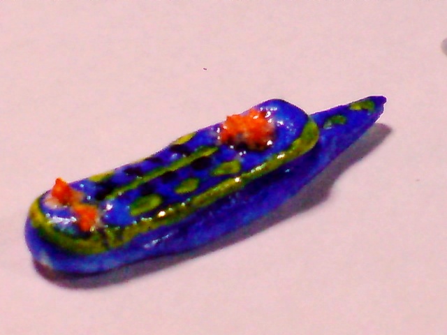 10/06/22:29 ウミウシ出来たよ\(^o^)/紙粘土でつくった、ウミウシ様。色をつけてみました。うーーーん、まだまだやねぇ~。 ウミウシの代表的に選手。基本的にどこにでも生息しています。ありふれすぎているので、あえてアオウミウシ様を選んで観ました。 もう、海では、アオウミウシ様を見てもカメラを向けることはほとんどないのですが・・・・ Entry No.2 ジンガサヒトエガイ様 こちらは、なかなかのレア物です。にゃん子も海の中では、一度しかお会いしていません。シャイなのか、全然、顔を出してくれません。 今年、もう一度、お目にかかりたいお一人(一匹)です。 ウミウシ様だけでなく、今回は、こんなのも作ってみました。 赤唐辛子と