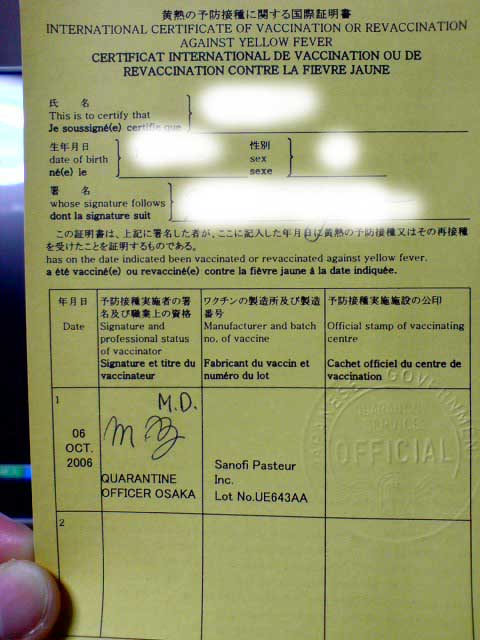 今日は、午後からお休みを取って、予防接種に行って来ました。「黄熱」の予防接種です。